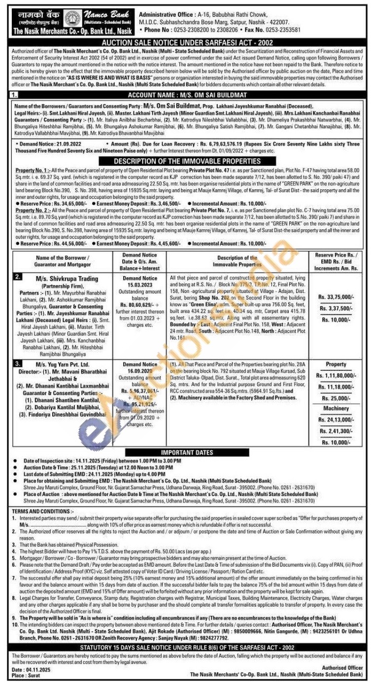 All that piece and parcel of constructed property situated, lying and being at R.S. No./ Block No. 375/3, T.P. No. 12, Final Plot No. 158, Non-agricultural property situated at Village Adajan, Dist. Surat, bering Shop No. 202 on the Second Floor in the building know as "Green Elina', adm. Super built-up area 756.00 Sq. feet, built area 434.22 sq. feet i.e. 40.34 sq. mtr, Carpet area 415.78 sq.feet. i.e.38.63 sq.mtr, Along with all easementary rights. Bounded by:-East: Adjacent Final Plot No. 158, West: Adjacent 24 mtr. Road, South: Adjacent Plot No. 148, North: Adjacent Plot No.161.