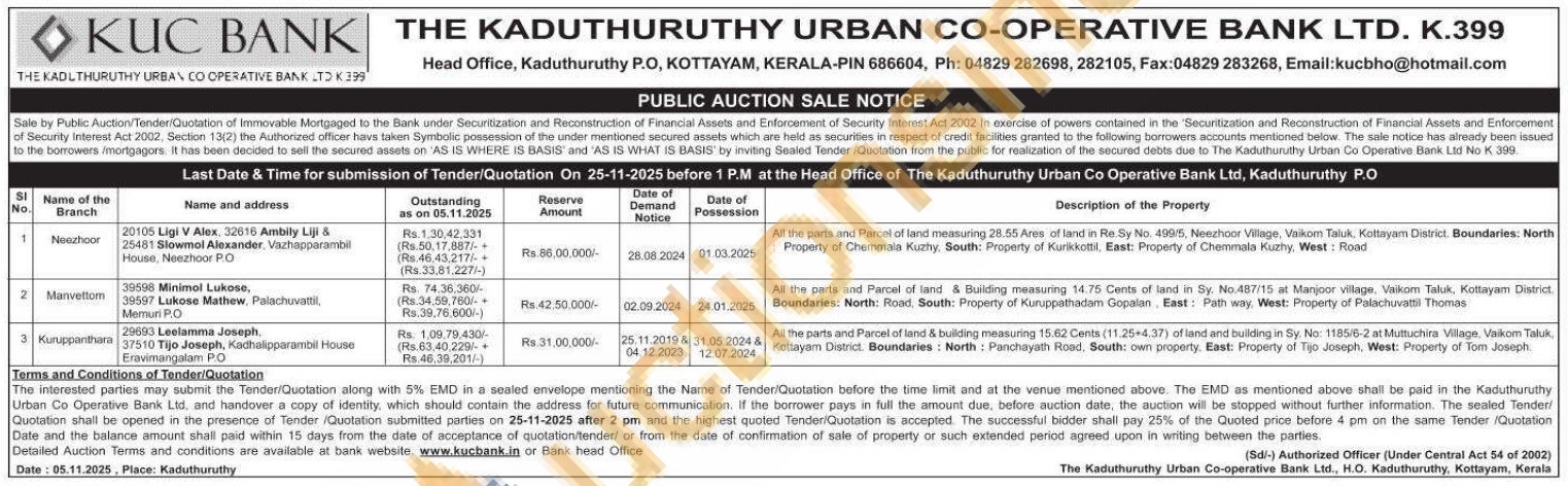 All the parts and Parcel of land measuring 28.55 Ares of land in Re. Sy No. 499/5, Neezhoor Village, Vaikom Taluk, Kottayam District. Boundaries: North Property of Chemmala Kuzhy, South: Property of Kurikkottil, East: Property of Chemmala Kuzhy, West: Road