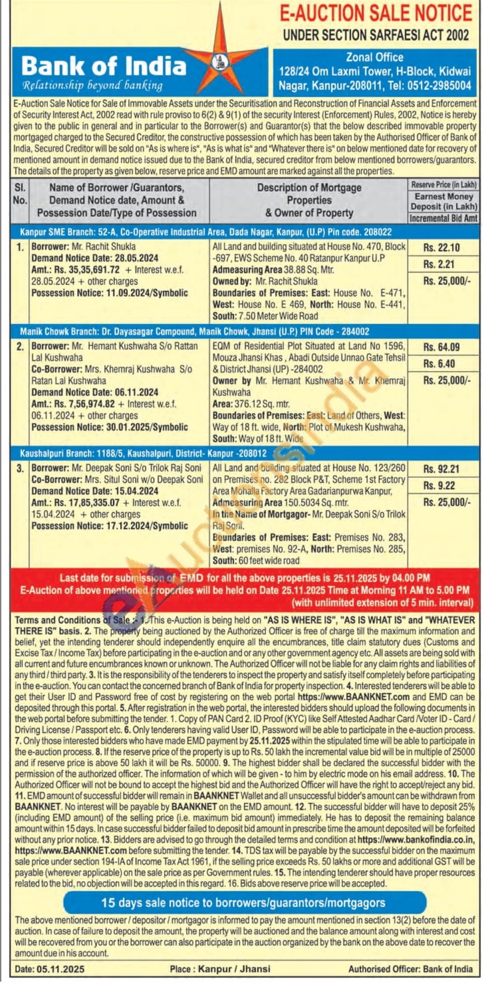 All Land and building situated at House No. 123/260 on Premises no. 282 Block P&T, Scheme 1st Factory Area Mohalla Factory Area Gadarianpurwa Kanpur,