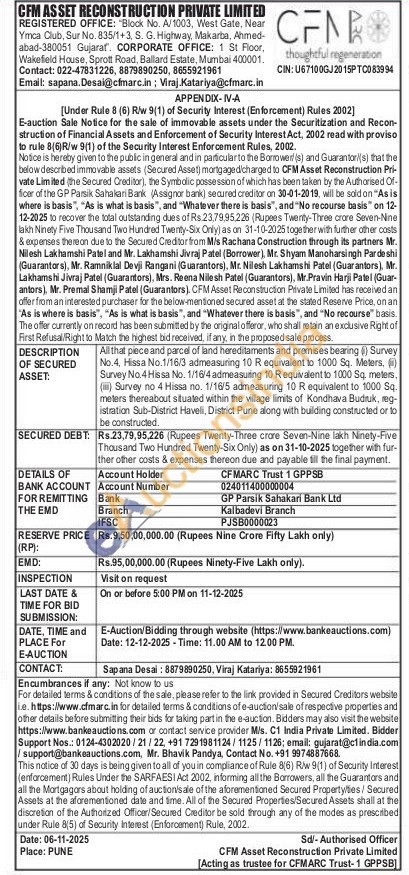 All that piece and parcel of land hereditaments and premises bearing () Survey No.4, Hissa No.1/16/3 admeasuring 10 R equivalent to 1000 Sq. Meters, Survey No. 4 Hissa No. 1/16/4 admeasuring 10 Requivalent to 1000 Sq. meters, (i) Survey no 4 Hissa no. 1/16/5 admeasuring 10 R equivalent to 1000 Sq. meters thereabout situated within the village limits of Kondhava Budruk, reg-istration Sub-District Haveli, District Pune along with building constructed or to be constructed.