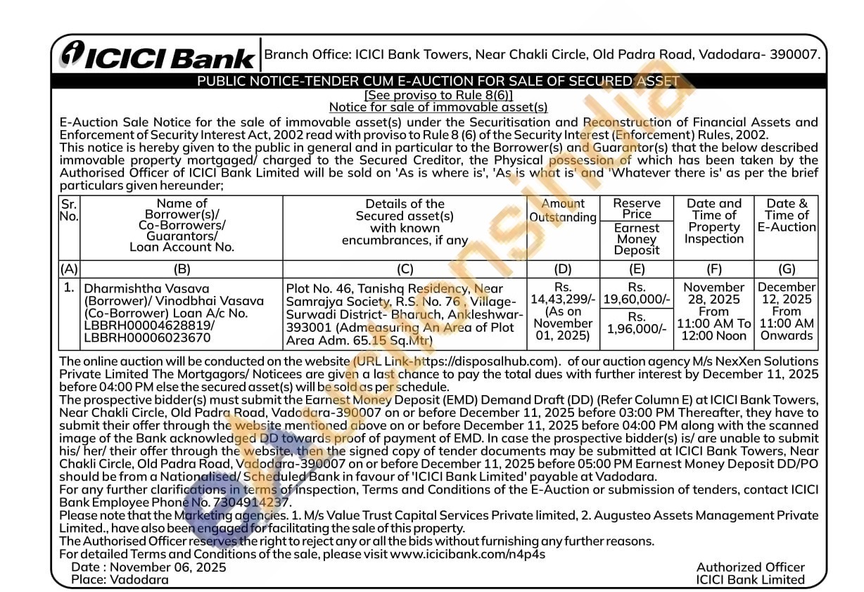 Plot No. 46, Tanishq Residency, Near Samrajya Society, R.S. No. 76, Village-Surwadi District- Bharuch, Ankleshwar-393001 (Admeasuring An Area of Plot Area Adm. 65.15 Sq.Mtr)
