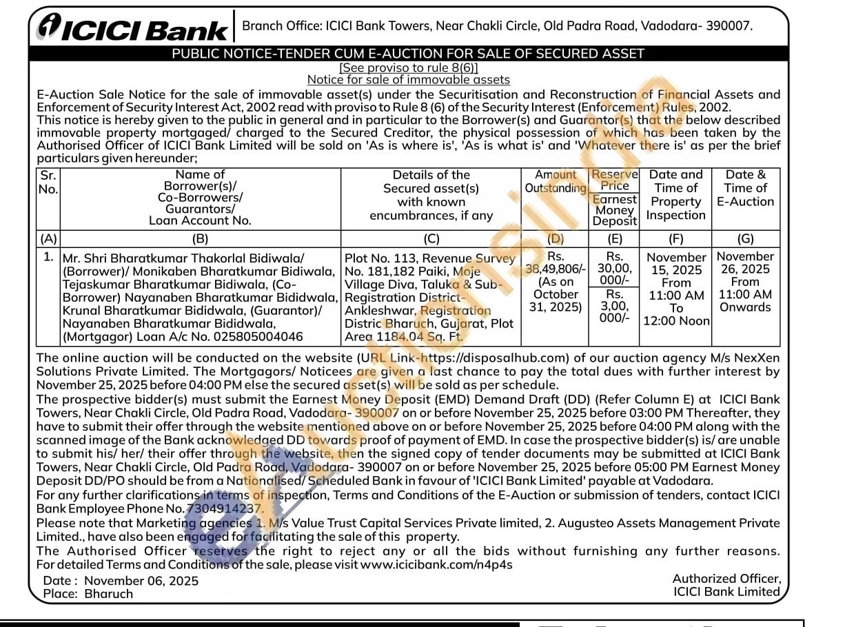 Plot no 113, Revenue Survey No. 181,182 Paiki, Moje Village Diva, Taluka & Sub-Registration District-Ankleshwar, Registration Distric Bharuch, Gujarat, Plot Area 1184.04 Sq. Ft.
