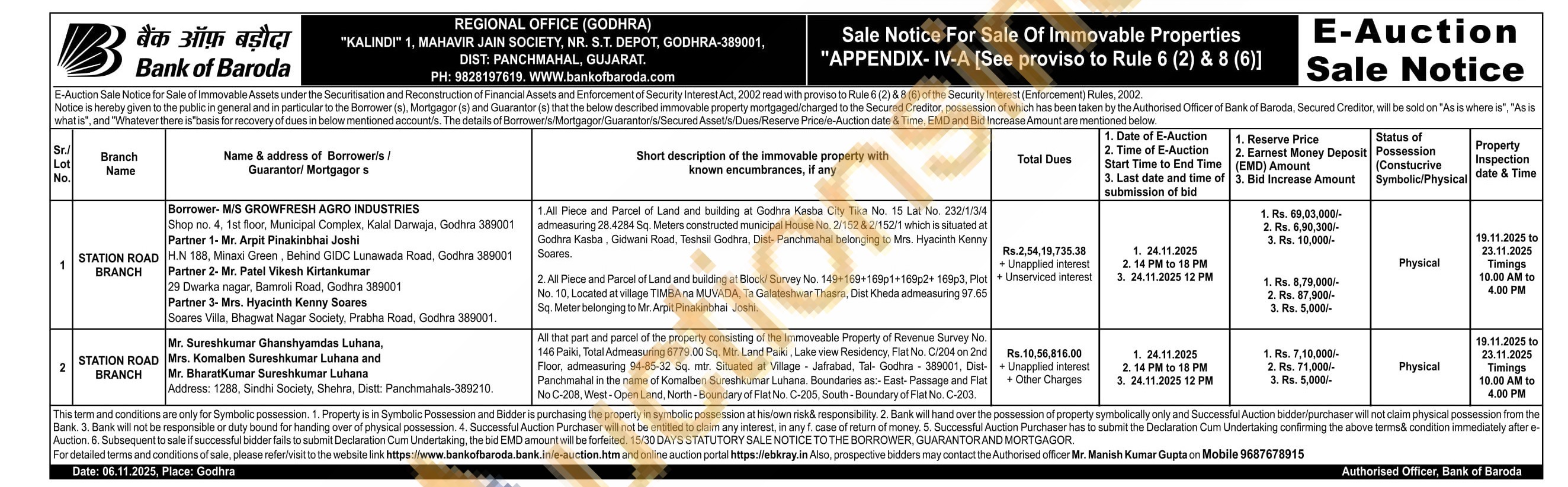 parcel of the property consisting of the Immoveable Property of Revenue Survey No. 146 Paiki, Total Admeasuring 6779.00 Sq. Mtr. Land Paiki, Lake view Residency, Flat No. C/204 on 2nd Floor, admeasuring 94-85-32 Sq. mtr. Situated at Village Jafrabad, Tal- Godhra 389001, Dist-Panchmahal in the name of Komalben Sureshkumar Luhana, Boundaries as:- East-Passage and Flat No C-208, West-Open Land, North-Boundary of Flat No. C-205, South-Boundary of Flat No. C-203