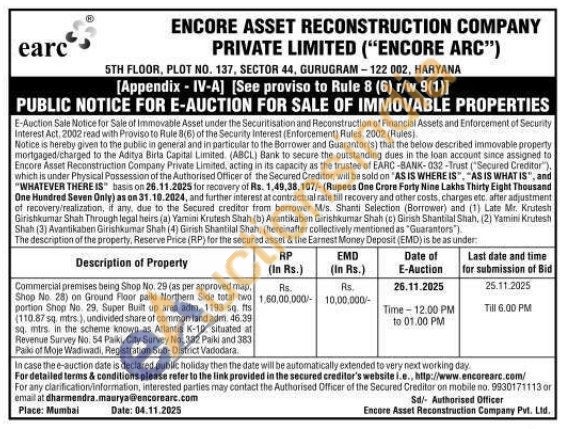 Commercial premises being Shop No. 29 (as per approved map, Shop No. 28) on Ground Floor paiki Northern Side total two portion Shop No. 29. Super Built up area adm. 1193 sq. fts (110.87 sq. mtrs), undivided share of common land adm. 46.39 sq. mtrs in the scheme known as Atlantis K-10, situated af Revenue Survey No. 54 Paiki, City Survey No. 382 Paiki and 383 Pailks of Moje Wadiwadi, Registration Sub-District Vadodara