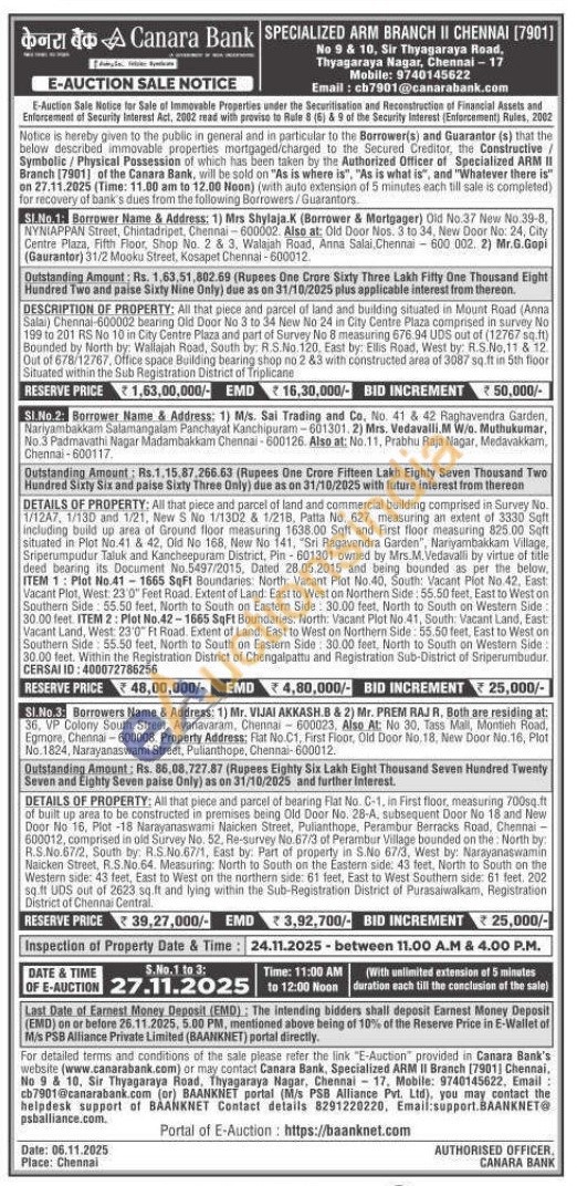 1)All that piece and parcel of land and building situated in Mount Road (Anna Satai) Chennai-600002 bearing Old Door No 3 to 34 New No 24 in City Centre Plaza comprised in survey No 199 to 201 RS No 10 in City Centre Plaza and part of Survey No 8 measuring 676.94 UDS out of (12767 sq.ft) Bounded by North by: Wailajah Road, South by: R.S.No. 120, East by: Ellis Road, West by: R.S No.11 & 12. Out of 678/12767, Office space Building bearing shop no 2 83 with constructed area of 3087 sq.ft in 5th floor Situated within the Sub Registration District of Triplicane