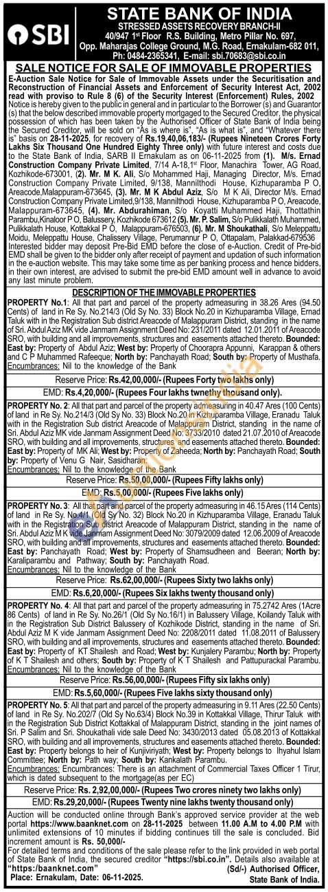 PROPERTY No. 2: All that part and parcel of the property admeasuring in 40.47 Ares (100 Cents) of land in Re Sy. No.214/3 (Old Sy No. 33) Block No.20 in Kizhuparamba Village, Eranadu Taluk with in the Registration Sub district Areacode of Malappuram District, standing in the name of Sri. Abdul Aziz MK vide Janmam Assignment Deed No: 3733/2010 dated 21.07.2010 of Areacode SRO, with building and all improvements, structures and easements attached thereto. Bounded: East by: Property of MK Ali; West by: Property of Zaheeda; North by: Panchayath Road; South by: Property of Venu G Nair, Sasidharan