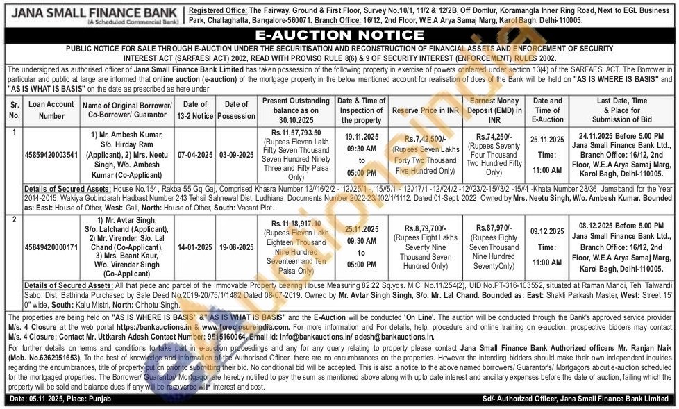 Details of Secured Assets: All that piece and parcel of the Immovable Property bearing House Measuring 82.22 Sq.yds. M.C. No.11/254(2), UID No.PT-316-103552, situated at Raman Mandi, Teh. Talwandi Sabo, Dist. Bathinda Purchased by Sale Deed No.2019-20/75/1/1482 Dated 08-07-2019. Owned by Mr. Avtar Singh Singh, S/o. Mr. Lal Chand. Bounded as: East: Shakti Parkash Master, West: Street 15 0" wide, South: Kalu Mistri, North: Chhotu Singh