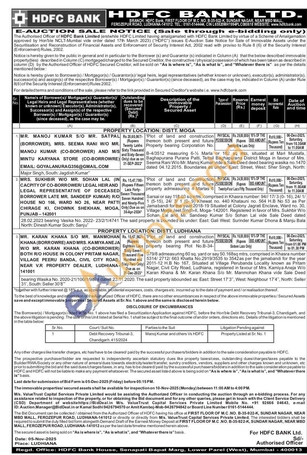 Plot of land and construction thereon both present and future property bearing Plot No.B-34- 379/8 admeasuring 60 sq. yard or say 50.168sq mtrs, comprised in Khasra number 5314/2712/663 Khatta No. 2919/3535 to 3542 as per the jamabandi for the year 2011-12 H.B No 167, Situated at Village Perubanda Locality known as Pritam Nagar, Civil City Road, Ludhiana, registered in favour of Mrs. Kamiya Aneja Wio Karan Khana & Mr. Karan Khana Sio Mr. Manmohan Khana vide Sale Deed bearing Wasika No. 2020-21/106/1/9874 dated 23.11.2020. The said property isbounded as: East: Street 17'3", West: Neighbour 17'4", North: Seller 31, South: Seller 30'8"