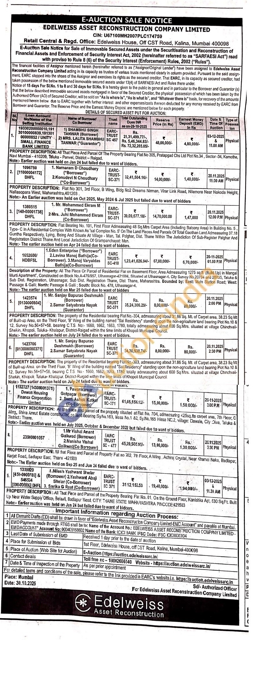 PROPERTY DESCRIPTION: All That Piece And Parcel Of The Property Bearing Flat No 305, Pratapgad Chs Ltd Plot No.34, Sector-34, Kamothe, Navi Mumbai-410209, Taluka - Panvel, District - Raigad. Note: