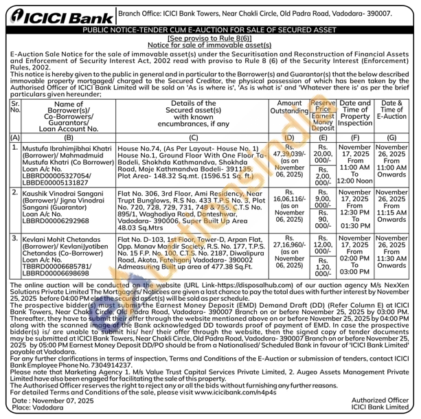 House No.74, (As Per Layout- House No. 1) House No.1, Ground Floor With One Floor Ta Bodeli, Shokhda Kathmandva, Shokhda Road, Moje Kathmandva Bodeli- 391135, Plot Area-148.32 Sq.mt. (1596.51 Sq. ft.)