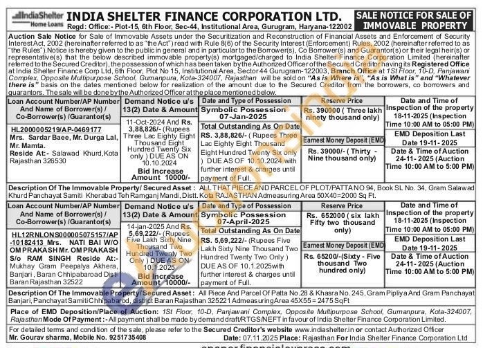 All Piece And Parcel Of Patta No.28 & Khasra No. 245, Gram Pipliya And Gram Panchayat Banjari, Panchayat Samiti Chhipabarod, district Baran Rajasthan 325221 Admeasuring Area 45X55=2475 SqFt