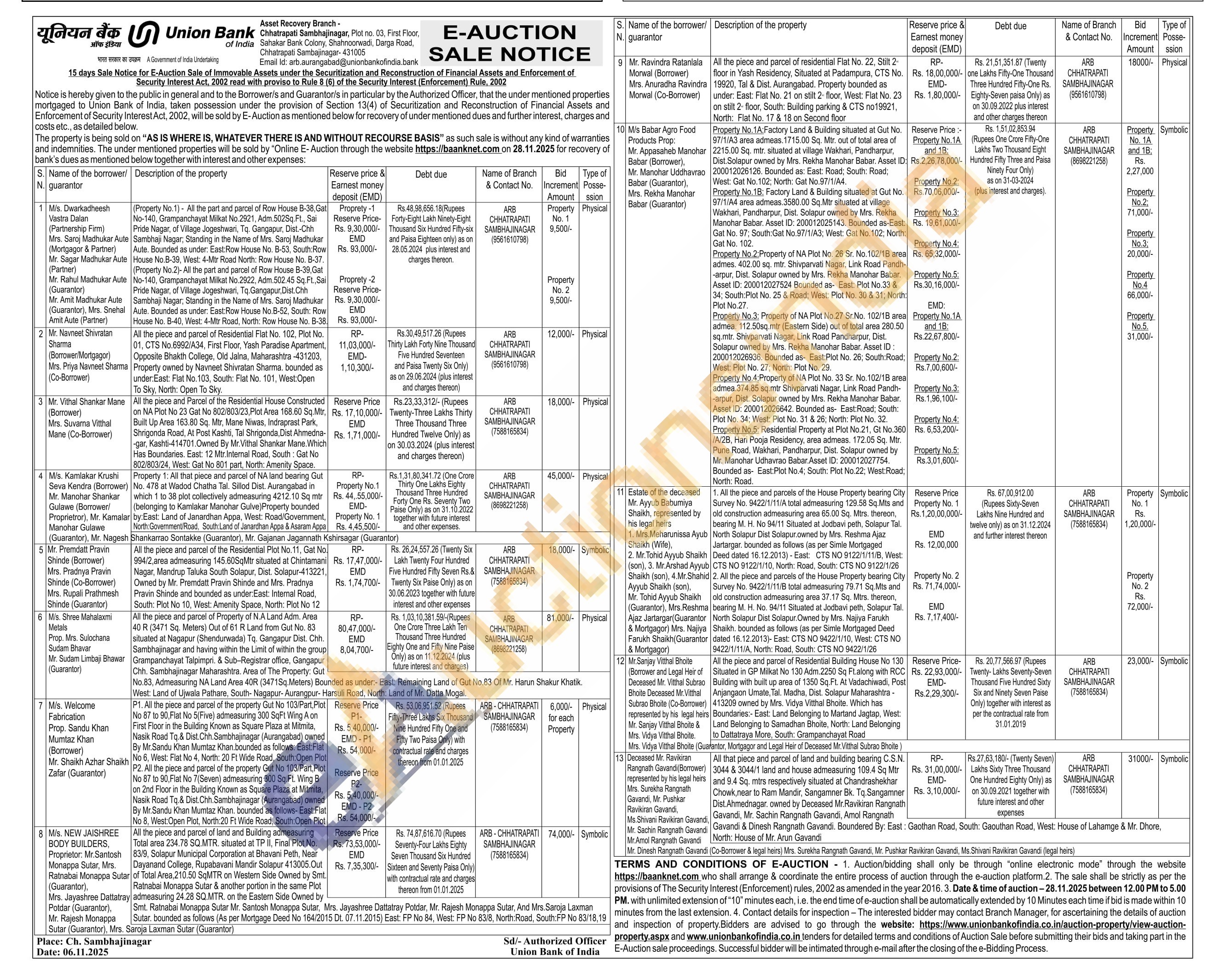 Property No.1A:Factory Land & Building situated at Gut No. 97/1/A3 area admeas. 1715.00 Sq. Mtr. out of total area of 2215.00 Sq. mtr. situated at village Wakhari, Pandharpur, Dist. Solapur owned by Mrs. Rekha Manohar Babar. Asset ID: 200012026126. Bounded as: East: Road; South: Road; West: Gat No. 102: North: Gat No.97/1/A4. Property No. 18; Factory Land & Building situated at Gut No. 97/1/A4 area admeas.3580.00 Sq.Mtr situated at village Wakhari, Pandharpur, Dist. Solapur owned by Mrs. Rekha Manohar Babar. Asset ID: 200012025143. Bounded as-East: Gat No. 97; South: Gat No.97/1/A3; West: Gat No. 102; North: Gat No. 102.