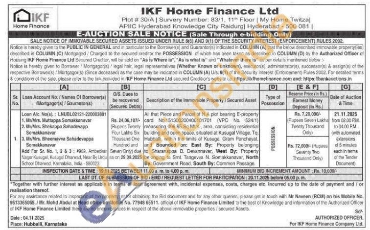 All that pieces and Parcel of N.A plot bearing E-property card No. 151300200400101701 (VPC No. 524/1) measuring 406.85 Sq.Mtrs., area, consisting residential building and open space, situated at Kusugal Village, Tq. Hubballi, within the limits of Kusugal Gram Panchayat.