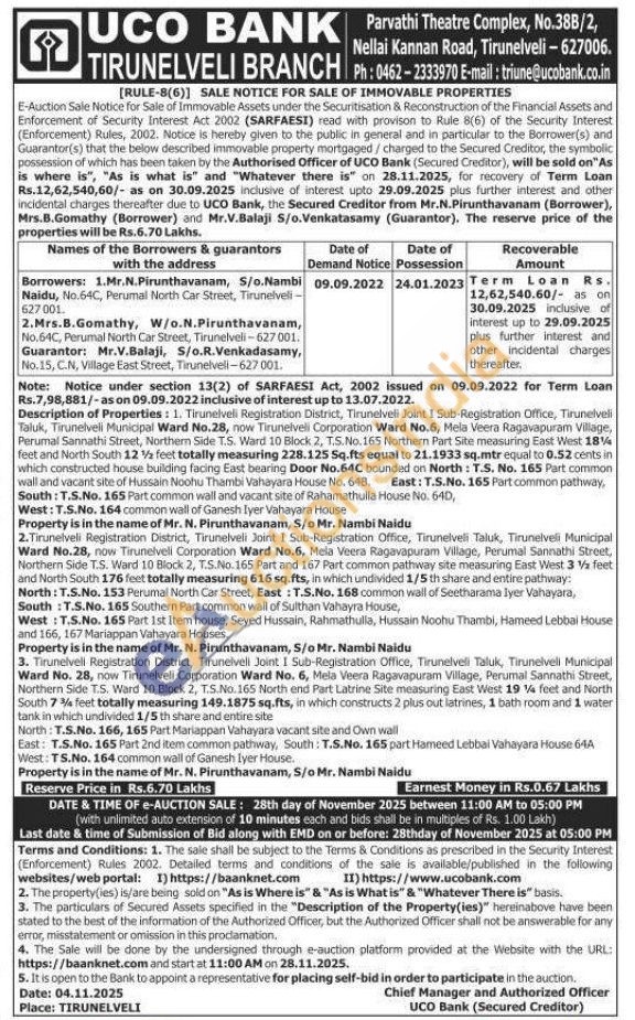 a) All that part and parcel of the property situated at mohalla Rail Saheb, Tekaitnagar, Pargana Dariyabad, Tehsil Sirauli Gauspur, Barabanki, admeasuring 65.42 sq. mtr. owned by Mrs. Sarojini Devi, Boundaries:-North: House of Durgesh, South: House of , Premlata, East: Kharanja, West: House of Premlata