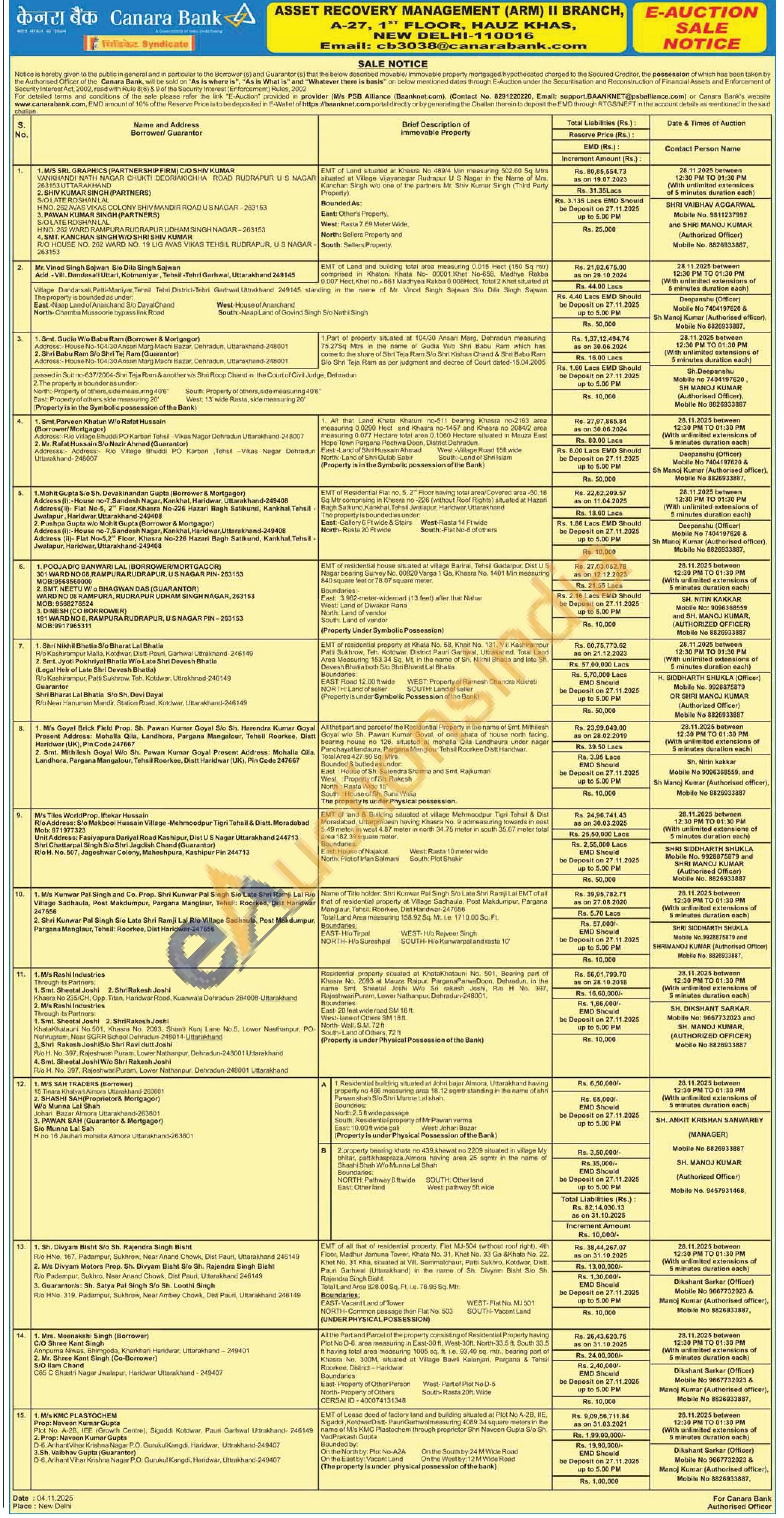 Contact SH. NITIN KAKKAR Mobile No: 9096368559 and SH. MANOJ KUMAR, (AUTHORIZED OFFICER) Mobile No 8826933887