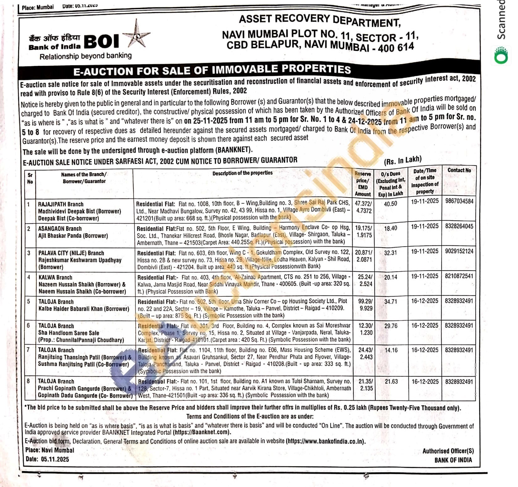 Residential Flat:- Flat no. 101, 1st floor, Building no. A1 known as Tulsi Sharnam, Survey no. 128, Sector-7, Hissa no. 1 Part, Situated near Aarvik Kirana Store, Village-Chikhloli, Ambernath West, Thane-421501 (Built-up area: 336 sq. ft.) (Symbolic Possession with the bank)