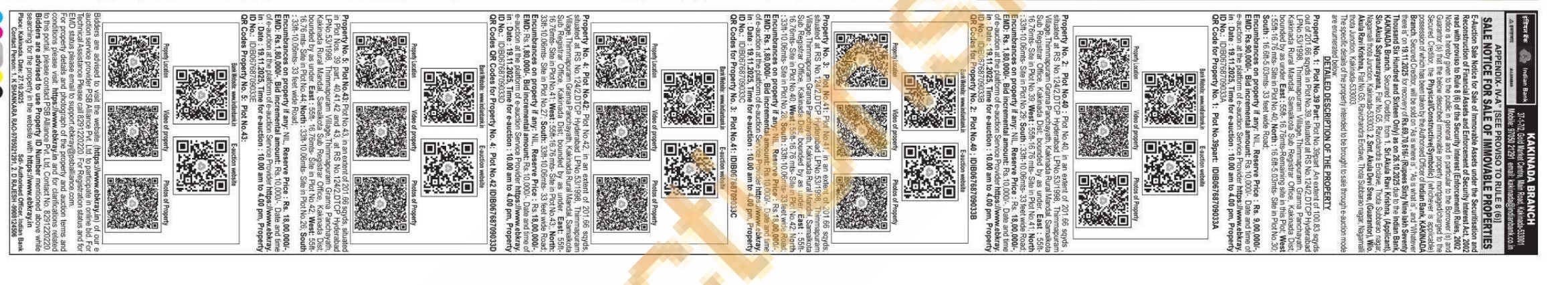Property No. 4: Plot No.42: Plot No.42, in an extent of 201.66 sqyds, situated at RS No. 124/2,DTCP Hyderabad LPNo.53/1998, Thimmapuram Village, Thimmapuram Grama Panchayath, Kakinada Rural Mandal, Samalkota Sub Registrar Office, Kakinada Dist; bounded by as under. East: 55ft-16.76mts-Site in Plot No.41; West: 55ft-16.76 mts-Site in Plot No.43;, North: 33ft-10.06mts-Site in Plot No.27; South: 33ft-10.06mts-33 feet wide Road; Encumbrances on property