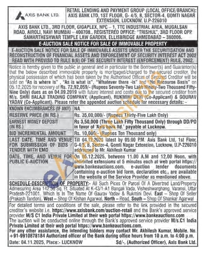 SCHEDULE-DESCRIPTION OF PROPERTY:- All Such Pices Or Parcel Of A Divertred Land/Property Admesuring Area 142.50 Sq. Ft. Situated At K-43/1-A1 Bangali Vada, Visheshwarghang, Varansi, Uttar Pradesh-221001. Which Is In The Name Of Gaurav Yadav & Rukmini Devi. East Shop Of Seller (Prakash Tandon), West-Shop Of Kishan Agarwal. North-Road, South-Shop Of Shankar Agarwal
