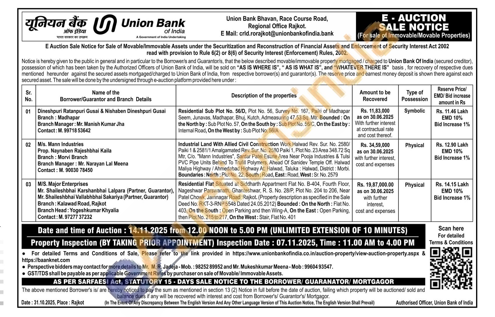 Mr. M. R. Jadeja-Mob.: 98252 89952 and Mr. Mukeshkumar Meena-Mob: 99604 93547