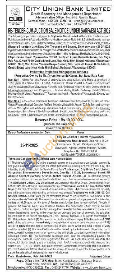 Item No.1: All the Part and Parcel of undivided and unspecified Joint Share of an extent of 155q yards at R.S. Nos. 188/1 & 534/1, Nearest Old D.Nos 23-41/4 & 23-46, Ibrahimpatnam Sub-Registration Office, Vijayawada Rural Mandal, Gollapudi Village. Krishna District within the following boundaries, East Property of B. Krishna Murthy, South: Pathway/Road to National Highway No.9, West: Property of T. Rabelamma. North Property of Venugopala Swamy Vari Devasthanam Item No.2: In the above mentioned Item No.1 Schedule Site, Shop No.GS-63, Ground Floor, Vasavi Pharma Market Complex Welfare Society with a plinth Area of 336 Sq feet and common Area of 110 Sq. feet with all its appurtanances and all easementary rights with in the following boundaries East: Vacant Site left as set back. South: Joint Wall between this shop and shop No.GS-62. West: Common Corridor, North: Joint wall between this shop and shop No. GS-64..