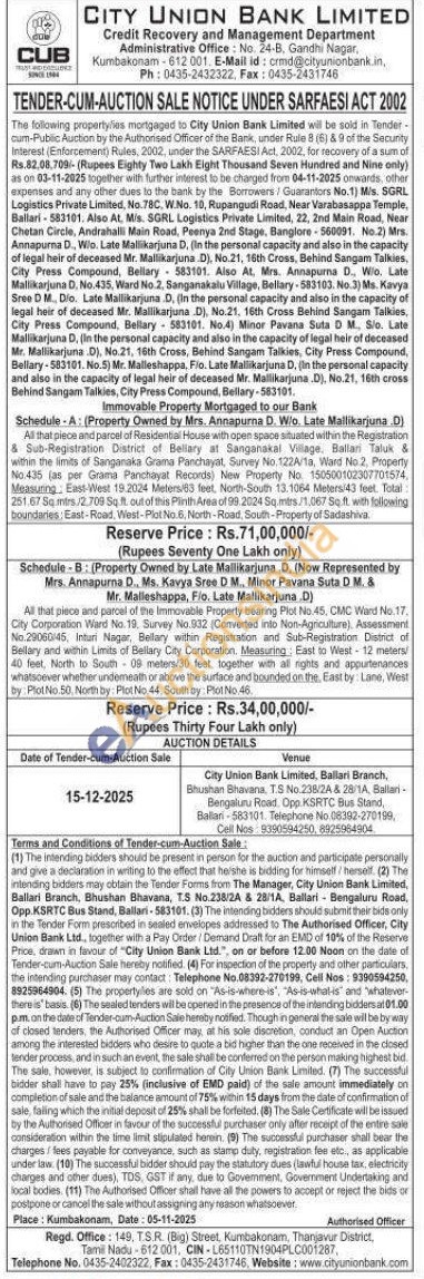 All that piece and parcel of the Immovable Property bearing Plot No.45. CMC Ward No.17. City Corporation Ward No. 19. Survey No.932 (Converted into Non-Agriculture). Assessment No.29060/45, Inturi Nagar, Bellary within Registration and Sub-Registration District of Bellary and within Limits of Bellary City Corporation. Measuring: East to West - 12 meters/40 feet, North to South 09 meters/30 feet, together with all rights and appurtenances whatsoever whether underneath or above the surface and bounded on the, East by: Lane, West by: Plot No.50, North by: Plot No 44, South by: Plot No.46