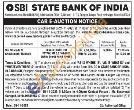 Description of the Vehicle Registered Nos./Make/Model RENAULT KWID RXT PETROL MT 0.8/09-2021 (White Board) KA 63 Μ 9593