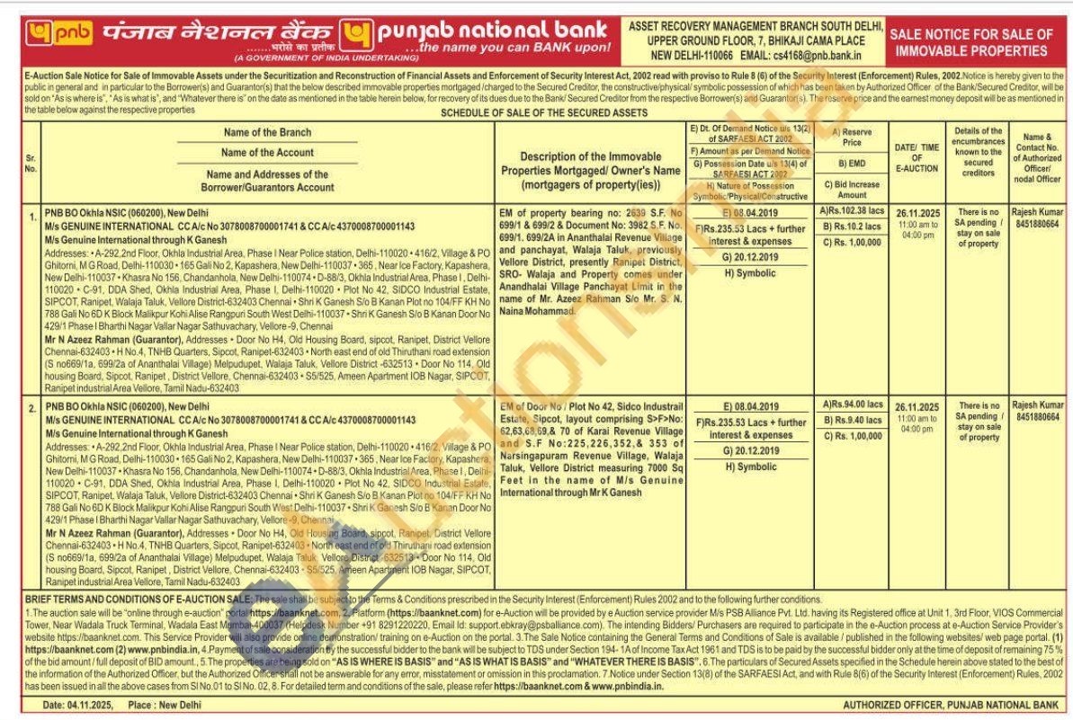 EM of property bearing no: 2639 S.F. No 699/1 & 699/2 & Document No: 3982 S.F. No. 699/1, 699/2A in Ananthalal Revenue Village and panchayat, Walaja Taluk, previously Vellore District, presently Ranipet District, SRO- Walaja and Property comes under Anandhalai Village Panchayat Limit in the name of Mr. Azeez Rahman Sio Mr. S. N. Naina Mohammad
