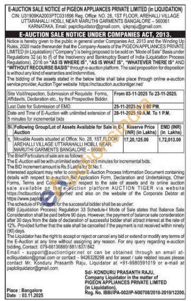 Mr. Konduru Prasanth Raju, Liquidator at +91-9980591019,9426328298