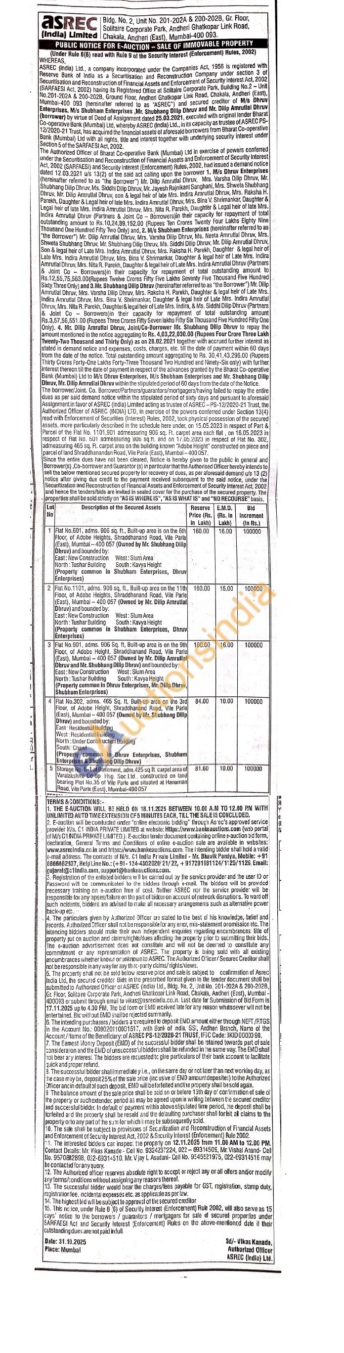 Flat No.901, adms. 906 Sq. ft, Built-up area is on the 9th Floor, of Adobe Height, Shraddhanand Road, Vile Parie (East), Mumbai-400 057 (Owned by Mr. Dilip Amrutlal Dhruv and Mr. Shubhang Dilip Dhruv) and bounded by East: New Construction West: Slum Area North: Tushar Building South: Kavya Height (Property common In Dhruv Enterprises, Mr. Dilip Dhruv, Shubham Enterprises)