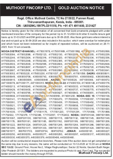 Muthoot Fincorp Ltd Gold Auctions Auction in Noida