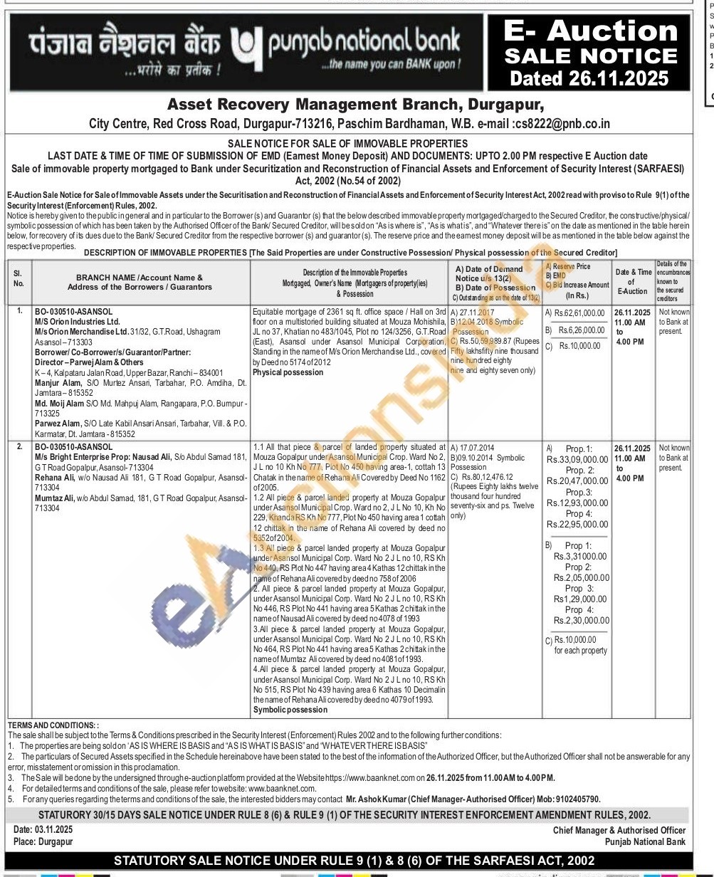 Mr. Ashok Kumar (Chief Manager-Authorised Officer) Mob: 9102405790