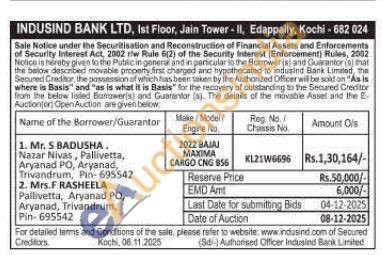 Make/Model/Engine No . 2022 BAJAJ MAXIMA CARGO CNG 856 KL21W6696 Reg no KL21W6696