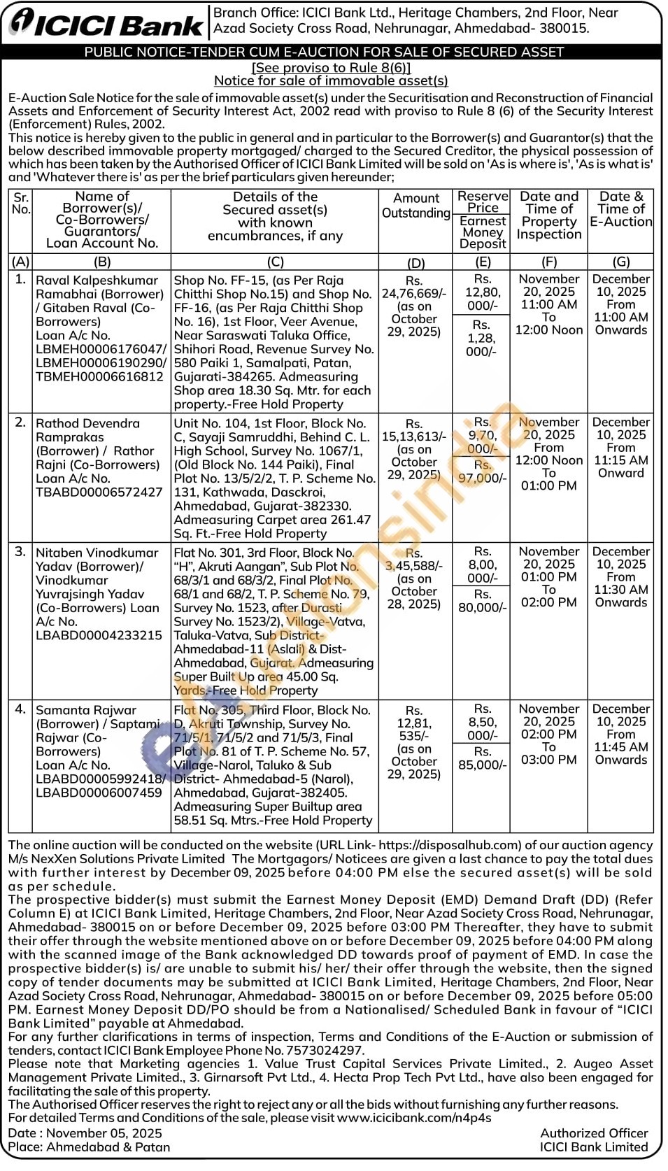 Unit No. 104, 1st Floor, Block No. C, Sayaji Samruddhi, Behind C. L. High School, Survey No. 1067/1, (Old Block No. 144 Paiki), Final Plot No. 13/5/2/2, T. P. Scheme No. 131, Kathwada, Dasckroi, Ahmedabad, Gujarat-382330. Admeasuring Carpet area 261.47 Sq. Ft.-Free Hold Property