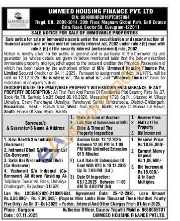 All That Part And Parcel Of Residential Plot Bearing Patta No.37, Book No.78, Sankalp No.05 Dated 06.10.2020, Measuring 1728 Sq Ft., Situated At Village Ukhaliya, Gram Panchayat Ukhaliya, Panchayat Samiti Nimbahaeda, District-Chittorgarh. Bounadries: East Barsati Nala, West: Aam Rasta, North: House Of Munna Lal Rawal, South: House Of Sonu Monu Bareth