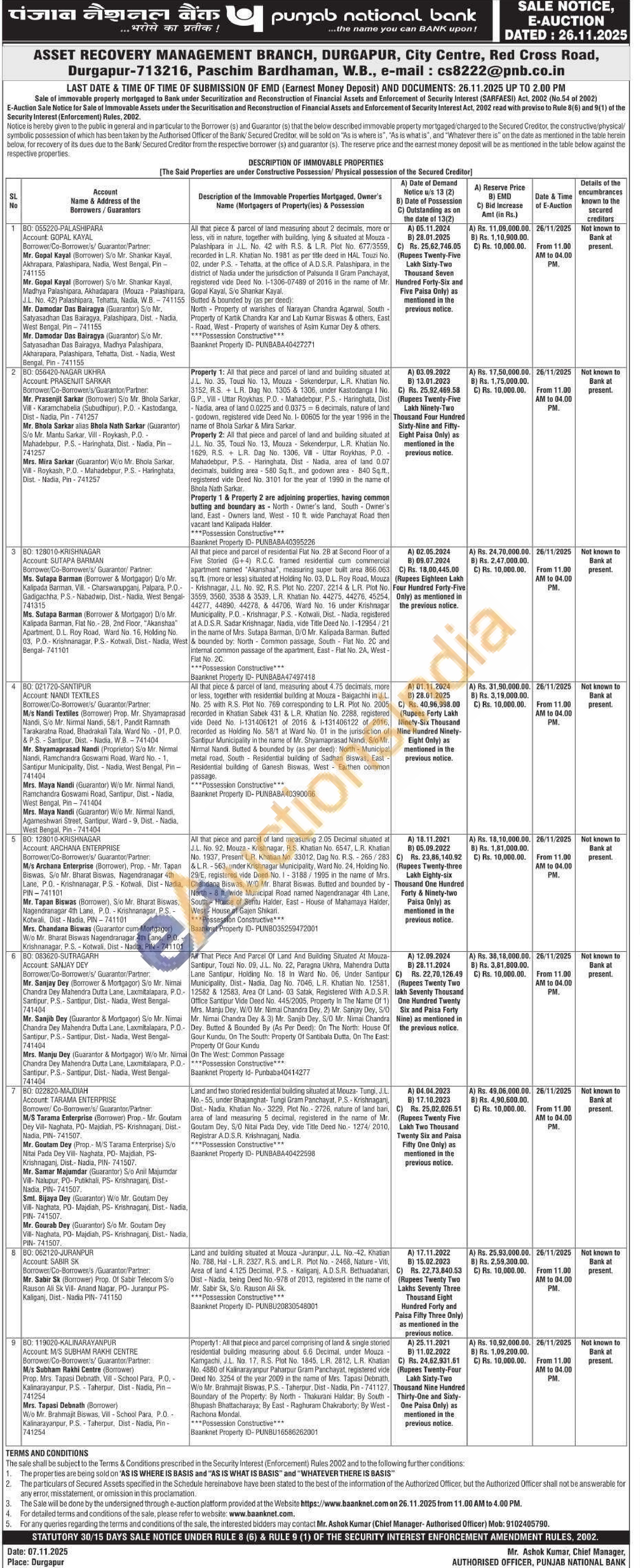 Land and two storied residential building situated at Mouza- Tungi, J.L. No.-55, under Bhajanghat-Tungi Gram Panchayat, P.S.- Krishnaganj, Dist.- Nadia, Khatian No. 3229, Plot No. 2726, nature of land bari, area of land measuring 5 decimal, registered in the name of Mr. Goutam Dey, S/O Nitai Pada Dey, vide Title Deed No.- 1274/2010, Registrar A.D.S.R. Krishnaganj, Nadia. ***Possession Constructive***