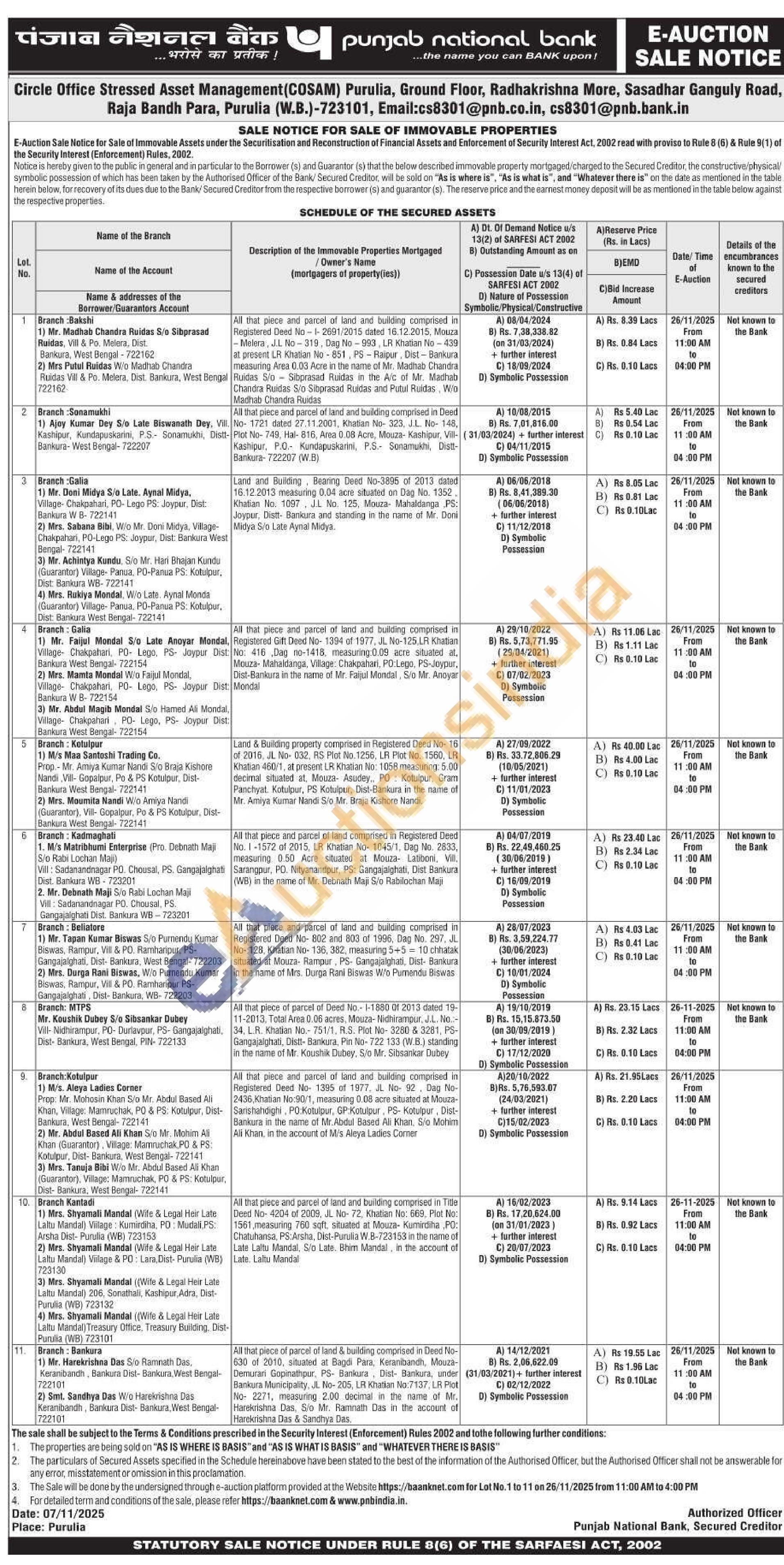 All that piece and parcel of land and building comprised in Registered Deed No- 1395 of 1977. JL No-92. Dag No-2436, Khatian No:90/1, measuring 0.08 acre situated at Mouza-Sarishahdighi, PO:Kotulpur, GP: Kotulpur, PS-Kotulpur, Dist-Bankura in the name of Mr.Abdul Based Ali Khan, S/o Mohim Ali Khan, in the account of M/s Aleya Ladies Corner