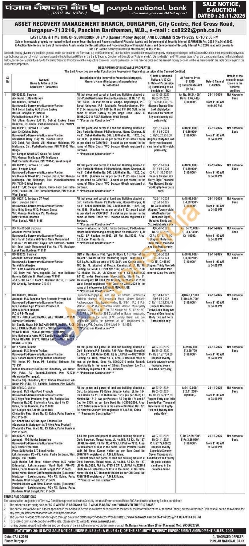 All that piece and parcel of land and building situated at Distt: Birbhum, P.S- Sainthia, P.O-Fulur, Mouza-Muradihi, J.L No-97, L.R Kh No-3346, RS & L.R Plot No-1887/1969, Holding No. 1085, Ward No. 7, Area-6 Decimal more or less as per Regd. Deed No. 5090/2010 under Sainthia Municipality in the name of Bibhas Choudhary S/o Sisir Choudhury registered at D.S.R Birbhum