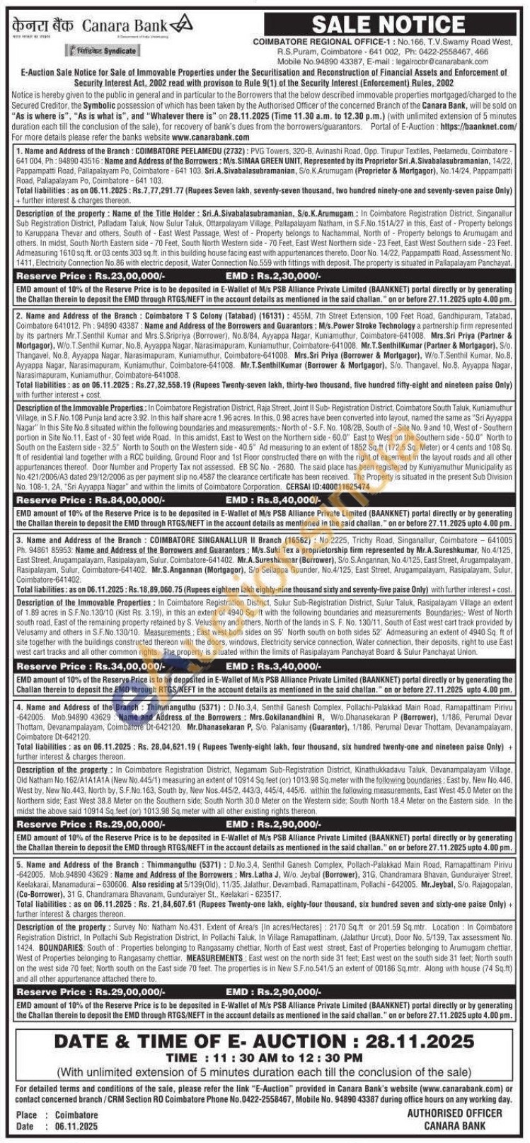 Contact Phone No. 0422-2558467, Mobile No. 94890 43387