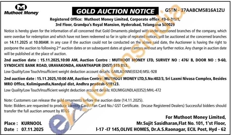 Muthoot Money Gold Auctions Auction in Anantapur