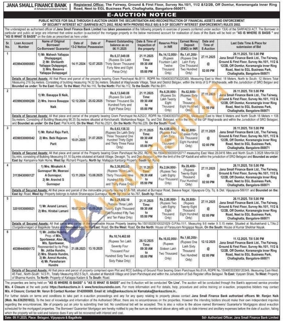 Details of Secured Assets: All that piece and parcel of the immovable House Property bearing No. 150100200100321029 G.P.No. 11/1, Measuring 9.6 meter X 5.15 meter, Situated at Muchakhandi LT.No. 2 (Durgadevinagar) of Bagalkote Taluka and Bounded on: On the East: Road, On the West: Road, On the North: House of Parasuram Ningappa Nayak. On the South: House of Kumar Shekhar Nayak