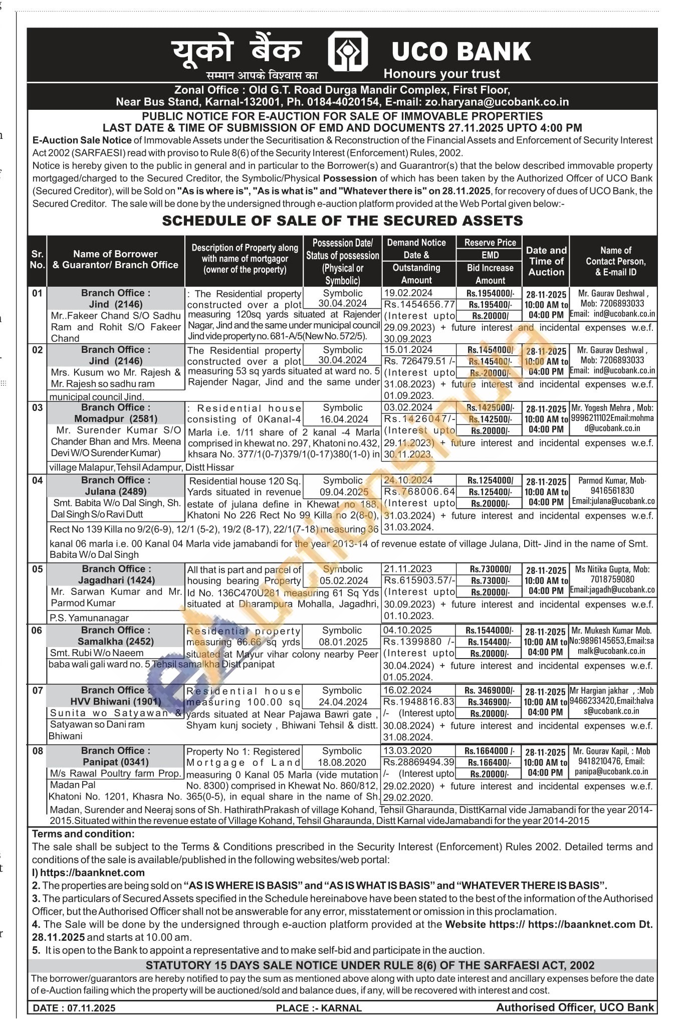 Property No 1: Registered Mortgage of Land measuring 0 Kanal 05 Marla (vide mutation Madan Pal No. 8300) comprised in Khewat No. 860/812 Khatoni No. 1201, Khasra No. 365(0-5), in equal share in the name of Sh Madan, Surender and Neeraj sons of Sh. Hathirath Prakash of village Kohand, Tehsil Gharaunda, DisttKarnal vide Jamabandi for the year 2014-2015.Situated within the revenue estate of Village Kohand, Tehsil Gharaunda, Distt Karnal videJamabandi for the year 2014-2015