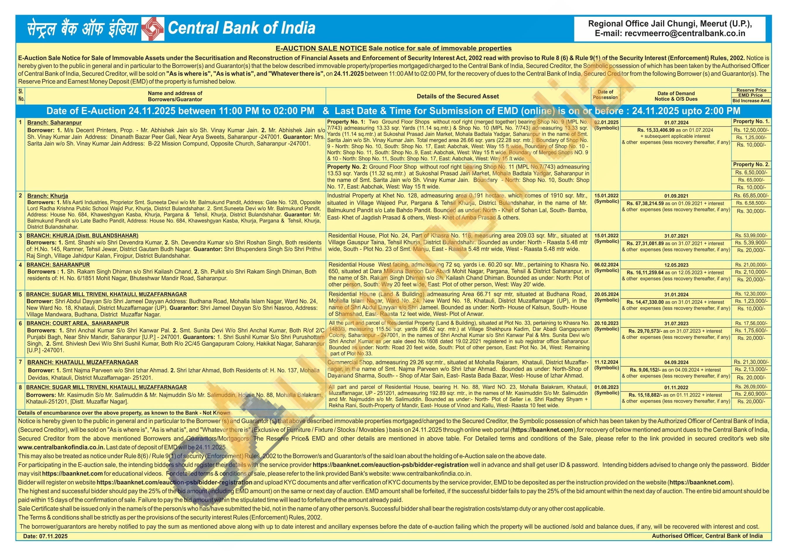 Contact no:E-mail: recvmeerro@centralbank.co.in
