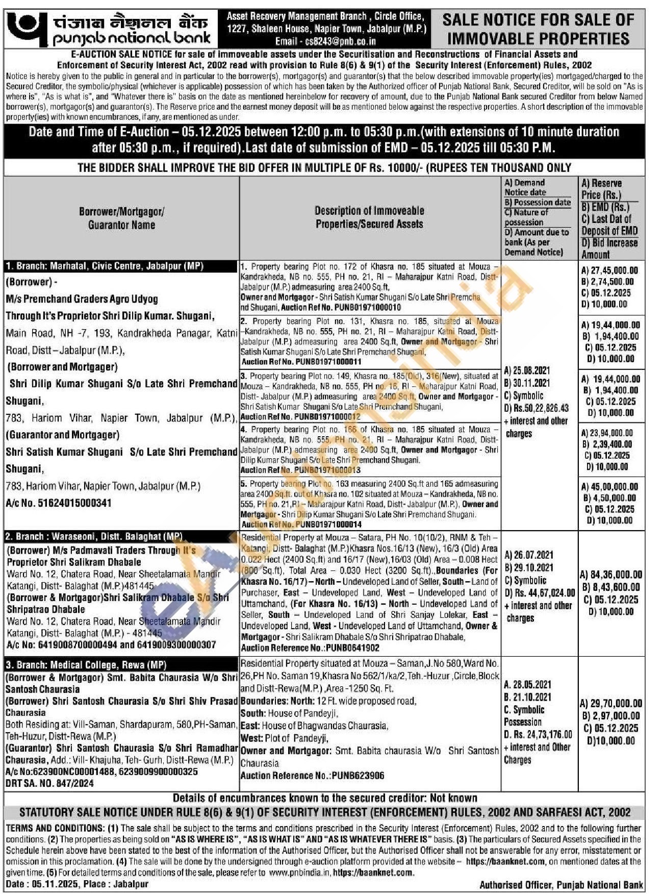 Residential Property at Mouza - Satara, PH No. 10(10/2), RNM & Teh -Katangi. Distt- Balaghat (M.P.) Khasra Nos. 16/13 (New), 16/3 (Old) Area 0.022 Hect (2400 Sq.ft) and 16/17 (New), 16/03 (Old) Area-0.008 Hect (800 Sq.ft), Total Area 0.030 Hect (3200 Sq.ft). Boundaries (For Khasra No. 16/17)-North-Undeveloped Land of Seller, South-Land of Purchaser, East - Undeveloped Land, West Undeveloped Land of Uttamchand. (For Khasra No. 16/13) North Undeveloped Land of Seller, South Undeveloped Land of Shri Sanjay Lolekar, East Undeveloped Land, West - Undeveloped Land of Uttamchand, Owner & Mortgagor-Shri Salikram Dhabale S/o Shri Shripatrao Dhabale, Auction Reference No.: PUNB0641902