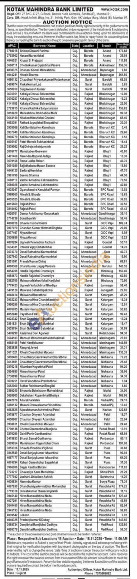 Kotak Mahindra Bank Gold Auctions Auction in Mumbai