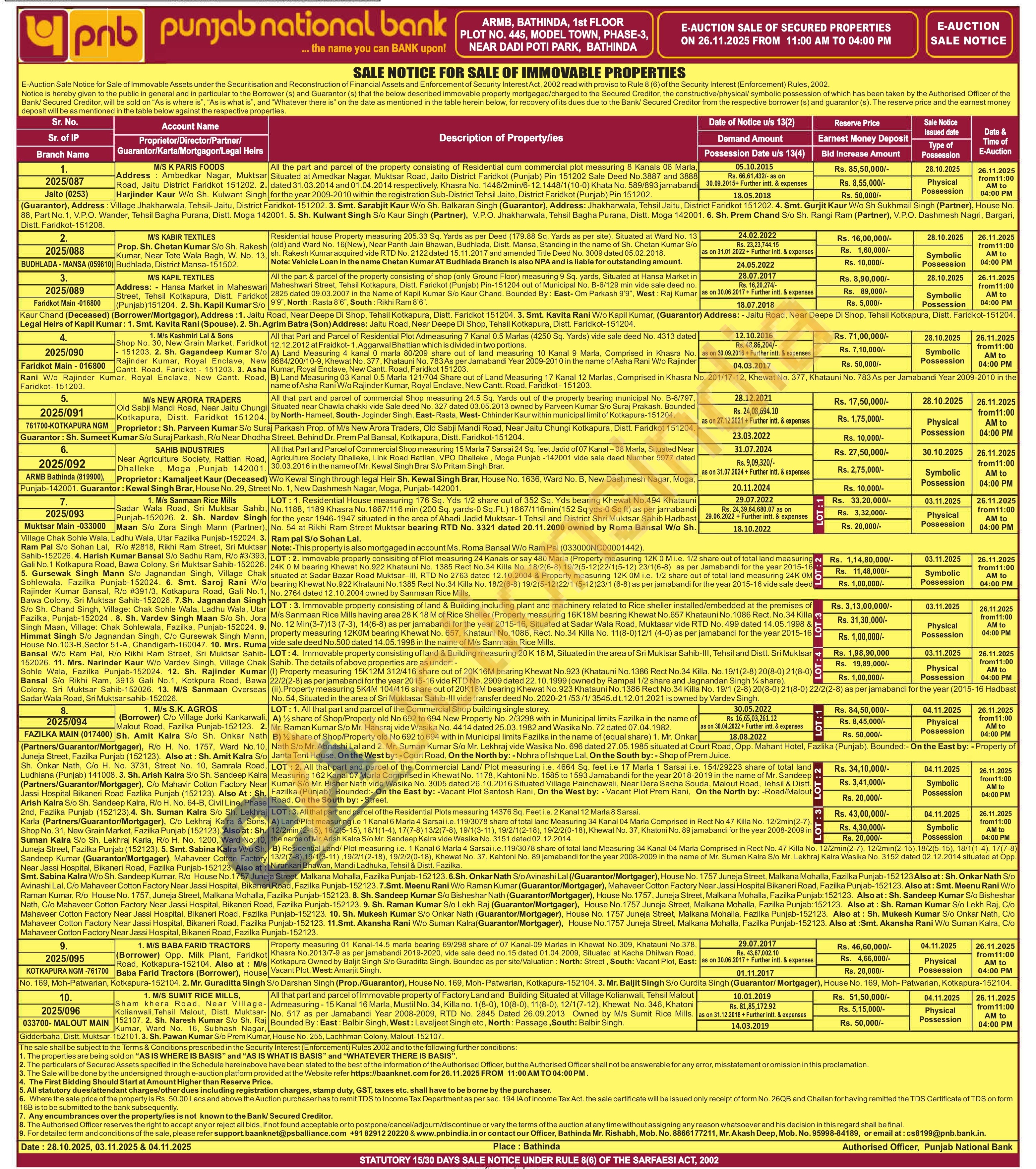 Residential house Property isuring 205.33 Sq. Yards as per Deed (179.88 Sq. Yards as per site), Situated at Ward No. 13 esh (old) and Ward No. 16(New), Near Panth Jain Bhawan, in name Chatan Kumar Sio 24.02.2022 23.21.744.15 as on 21.01.2022 Further & expenses 13 sh. Rakesh Kumar acquired vide RTD No. 2122 dated 15.11.2017 and amended Title Deed No. 3009 dated 05.02.2018. Note: Vehicle Loan in the name Chetan Kumar AT Budhlada Branch is also NPA and is liable for outstanding amount