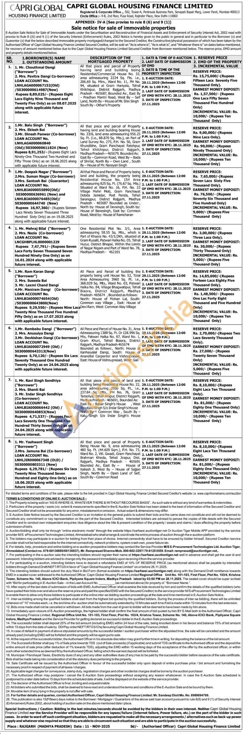 Contact Authorised Officer Mr. Sandeep Dixit Mo. No. 8989694769