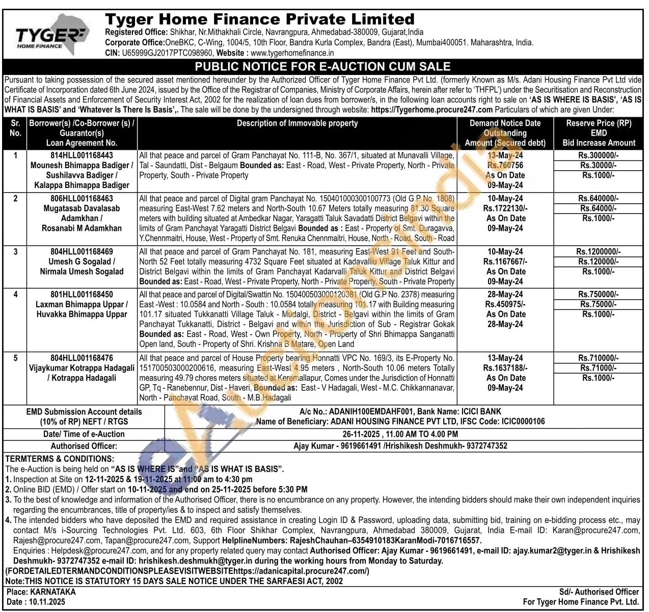 All that peace and parcel of House Property bearing Honnatti VPC No. 169/3, its E-Property No. 151700503000200616, measuring East-West 4.95 meters, North-South 10.06 meters Totally measuring 49.79 chores meters situated at Keremallapur, Comes under the Jurisdiction of Honnatti GP, Tq-Ranebennur, Dist - Haveri, Bounded as: East - V Hadagali, West-M.C. Chikkannanavar, North - Panchayat Road, South - M.B.Hadagali