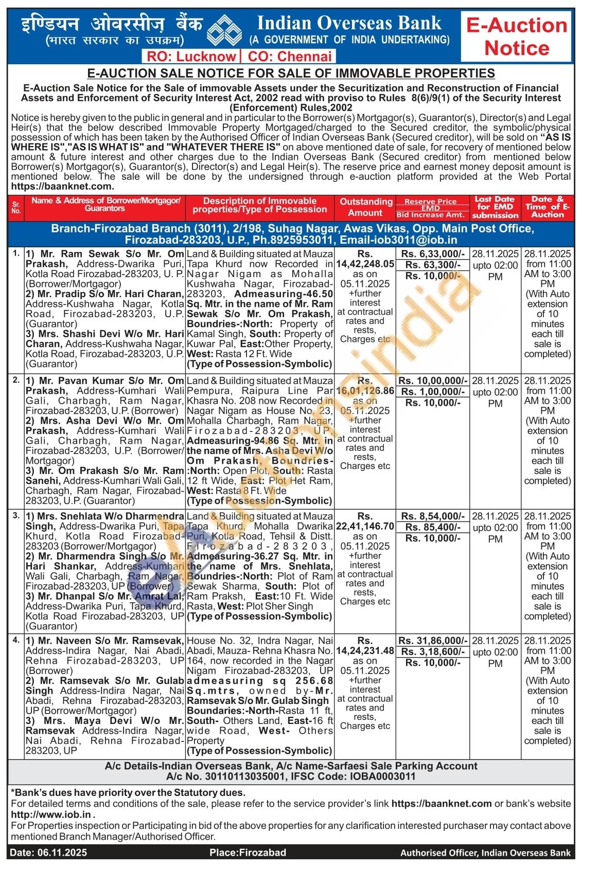 Land & Building situated at Mauza Tapa Khurd now Recorded in Nagar Nigam as Mohalla Kushwaha Nagar, Firozabad-283203, Admeasuring-46.50 Sq. Mtr. in the name of Mr. Ram Sewak S/o Mr. Om Prakash, Boundries-:North: Property of Kamal Singh, South: Property of Kuwar Pal, East: Other Property, West: Rasta 12 Ft. Wide (Type of Possession-Symbolic)