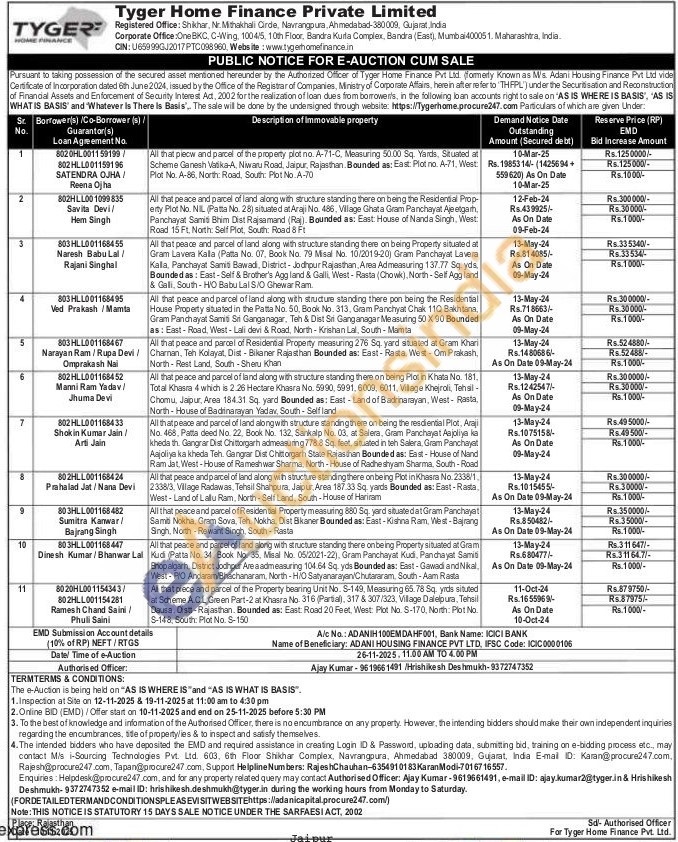 All that peace and parcel of land along with structure standing there on being the Residential Prop-erty Plot No. NIL (Patta No. 28) situated at Araji No. 486, Village Ghata Gram Panchayat Aje etgarh, Panchayat Samiti Bhim Dist Rajsamand (Raj). Bounded as: East: House of Nanda Singh, West: Road 15 Ft, North: Self Plot, South: Road 8 Ft