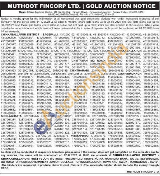 Muthoot Fincorp Ltd Gold Auctions Auction in Chikkaballapur
